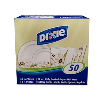 Dixie Party-in-a-Box Combo Pack - 8.5" & 6.5" Paper Plates, 12 oz. Paper Hot Cups, and Cutlery (1 Box of 50 Dining Sets). Reviewed by Peter M. Rating: