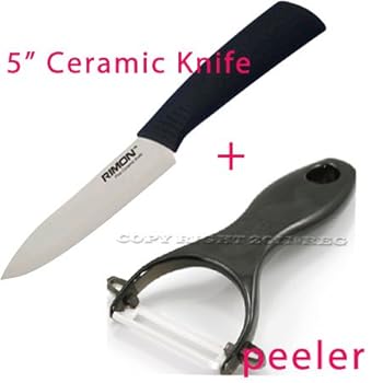RIMON Set Lot of 2 2-Piece (5" + Peeler ) 5 inches 5in Paring Cutting Slicing Utility Peeling Ceramic Knife Cutlery White Blade Black ABS Handle Kitchen Chefs. Reviewed by Caroline H. Rating: