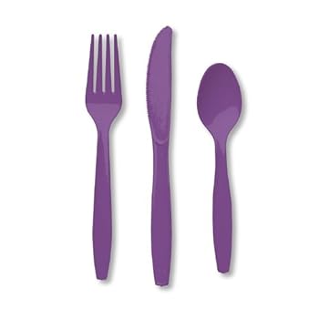 Creative Converting Premium Plastic Cutlery (Fork, Spoon, Knife) Assortment, Purple Color, Package Of 24, (Pack of 12). Reviewed by William A. Rating: