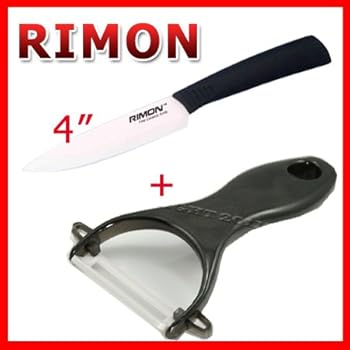 RIMON Set Lot of 2 2-Piece (4" + Peeler ) 4 inches 4in Paring Cutting Slicing Utility Peeling Ceramic Knife Cutlery White Blade Black ABS Handle Kitchen Chefs. Reviewed by Perry S. Rating: