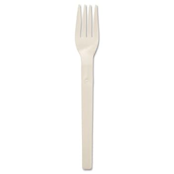 Savannah Supplies Inc. Products - Savannah Supplies Inc. - Compostable Cutlery, Plant Starch/Oil Fork, 6" Length, 100/Pack, White - Sold As 1 Pack - Cutlery made from plant starch and oil, primarily potato starch and soy oil. - Fully biodegradable and compostable in commercial composting environments. - Can tolerate heat up to 220°F.. Reviewed by Peter M. Rating: