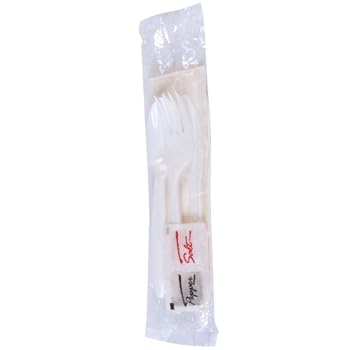 Dixie CMP26NSPC Medium Weight Polypropylene Fork, Knife, Teaspoon, Napkin, Salt and Pepper Cutlery Kit, White (Case of 250). Reviewed by Robert E. Rating:
