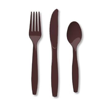 Creative Converting Premium Plastic Cutlery (Fork, Spoon, Knife) Assortment, Chocolate Brown Color, Package Of 24, (Pack of 12). Reviewed by Peter M. Rating: